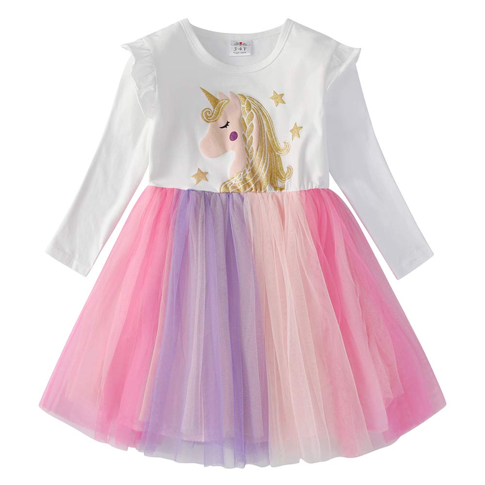 VIKITA Vestito Cotone Stampa Principessa Tulle Tutu Festa di Compleanno Abito Bambina LH4660 8T