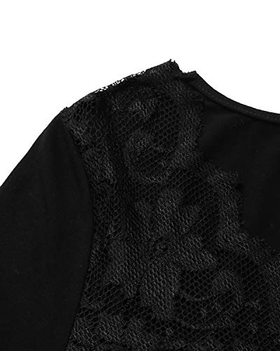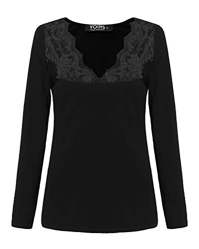 YOINS Camicette Donna Manica Lunga Maglia Pizzo Crop Magliette XXL, Nero