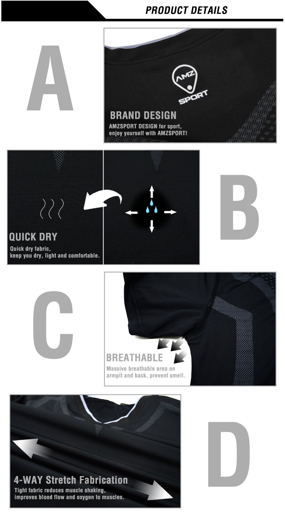 AMZSPORT Canotta Compressione da Uomo Sport Senza Maniche Base XXL, Nero