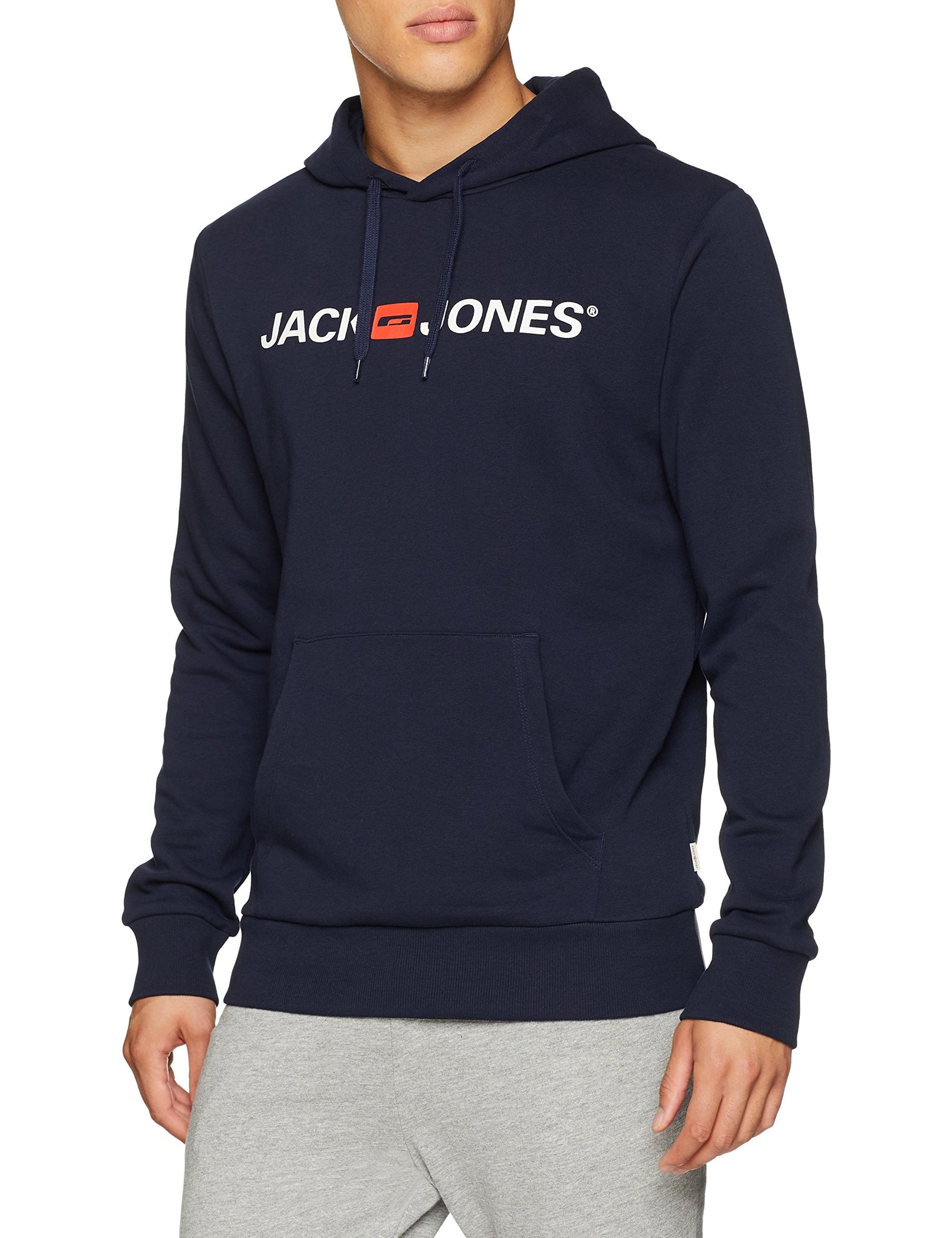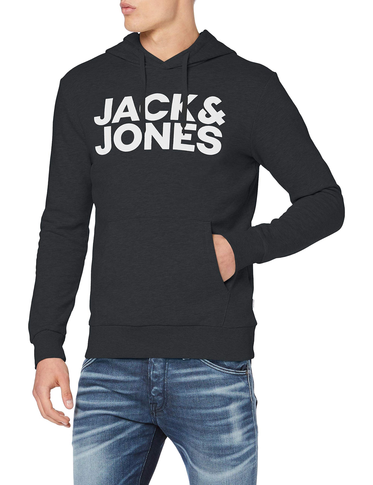 JACK & JONES Jjecorp Logo Sweat Hood Noos Cappuccio, Nero (Black Detail:Reg... - Ilgrandebazar