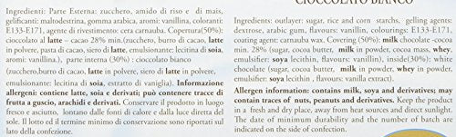 Taglia:1 kgDescrizioneConfetti di cioccolato al latte ripieni di cioccolato biancoIngredientiCioccolato al latte (50%) (zucchero, burro di cacao, latte intero in polvere, pasta di cacao, siero di latte in polvere, emulsionante: lecitina di soia, aromi: vanillina); cioccolato bianco (30%) (zucchero, burro di cacao, latte in polvere, siero di latte in polvere, emulsionante: lecitina di soia, estratto di vaniglia); zucchero; amido di riso e di mais; gelificanti: maltodestrina, gomma arabica; coloranti: e133 - e171; agente di rivestimento: cera carnauba; aroma: vanillina. Cacao min.28%Indicazioni-Avviso di sicurezza-Visualizza di più
