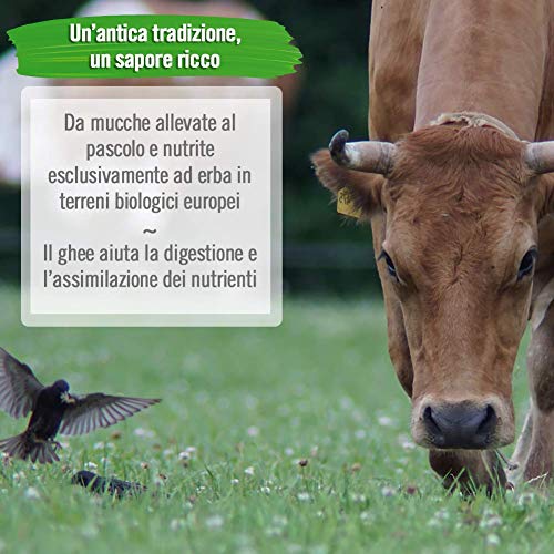- QUALITÀ – Ghee pregiato biologico, ottenuto da burro di altissima qualità proveniente solo da MUCCHE ALLEVATE AL PASCOLO. Autentico, lavorato secondo la ricetta Ayurvedica in slow cooking. Senza conservanti e additivi. Genuino, Puro al 100%. Nutriente e salutare.