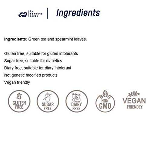 LA TETERA AZUL 100 bustine di tè verde biologico con menta piperita. Tè arabo moresco biologico stile arabo marocchino. 100 sacchetti da 1,5 grammi.