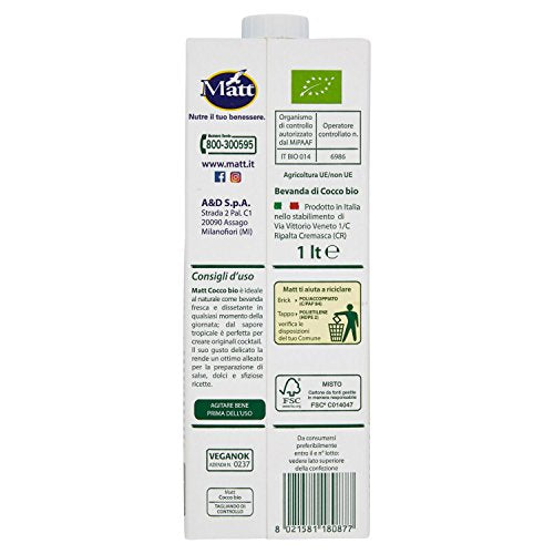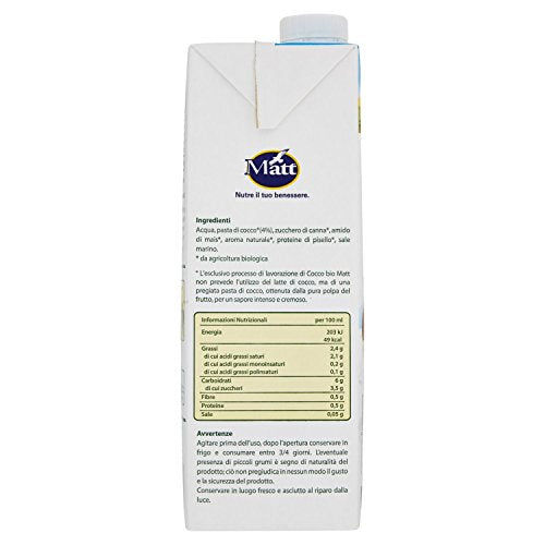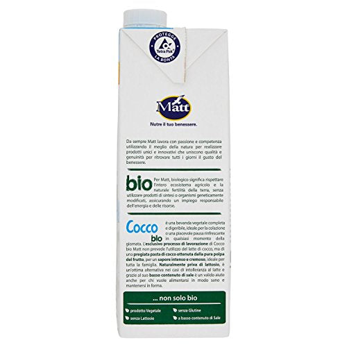Matt - Cocco Bio - Bevanda Rinfrescante al Cocco - Vegetale, Senza Lattosio e Senza Glutine - 3 pezzi da 1 l [3 l]