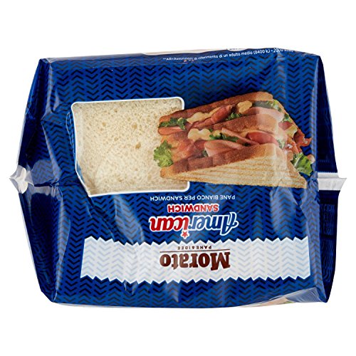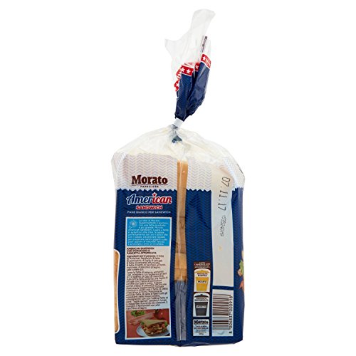 DescrizioneMorato American Sandwich Gr.550.IngredientiOlio vegetale (colza) 1,3% Emulsionanti: mono e digliceridi degli acidi grassi, stearoil-2-lattilato di sodio Può contenere tracce di latte e uova Trattato con alcool etilico Farina di soia Sale Lievito Acqua Farina di grano tenero tipo "0"