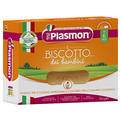 Descrizione6 confezioni da 720g ciascuna.L'esclusiva ricetta del Biscotto Plasmon, con calcio, vitamine del gruppo B selezionate e con ferro che contribuisce al normale sviluppo cognitivo e del sistema immunitario.Da sempre, è caratterizzato dalla sua giusta friabilità, il gusto inconfondibile e la sua proprietà unica di sciogliersi facilmente in bocca, così importante per il bambino nelle prime fasi dello svezzamento.Tutti gli ingredienti sono attentamente controllati, senza coloranti e conservanti (come per legge). Inoltre, sono senza burro, senza uova.Sempre attenta al fabbisogno nutrizionale del tuo bambino, Plasmon regala una dolce coccola dal gusto inimitabile amato dalle mamme e i papà.Il consumo del Biscotto Plasmon è da intendersi all’interno di una dieta varia ed equilibrata e di uno stile di vita sano. 15g di Biscotti Plasmon forniscono una quantità significativa di ferro. Il prodotto deve essere conservato in luogo asciutto e lontano da fonti di calore.Ingredientifarina di frumento, zucchero, oli vegetali (girasole, oliva), latte scremato in polvere, amido di frumento, estratto di malto da orzo, agenti lievitanti (carbonato acido di ammonio, carbonato acido di sodio, difosfato disodico), calcio carbonato, emulsionante: lecitina di girasole, aromi, ferro fumarato, niacina, riboflavina, tiamina, vitamina b6.Indicazioniil consumo del biscotto plasmon è da intendersi all'interno di una dieta varia ed equilibrata e di uno stile di vita sano. 15 g di biscotti plasmon forniscono una quantità significativa di ferroAvviso di sicurezzanoVisualizza di più