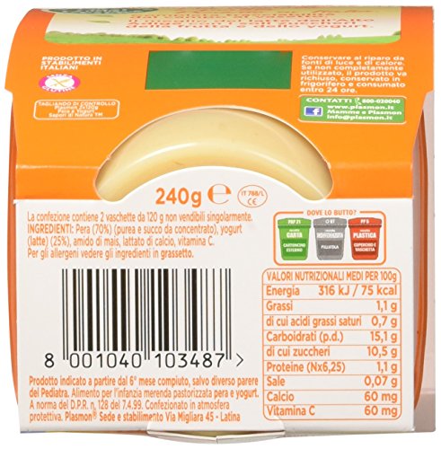 Plasmon Omogeneizzato di Yogurt Pera - 24 pezzi da 120 gr