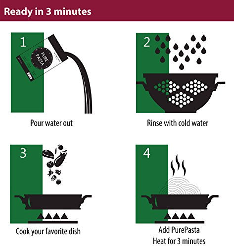 - ⏲ SOLTANTO 3 MINUTI! RAPIDO, FACILE, COMODO E PIÙ IMPORTANTE, UNA DELIZIA. – Con PURE PASTA, soltanto devi aprire, sciaquare con acqua fredda, riscaldare con i tuoi ricette favorite ed è presto per mangiare. È cosí comodo che si puo utilizzare a casa, ufficio, picnic o passeggiata. PURE PASTA è il sostituto perfetto delle farine tradizionali pero tutta la famiglia