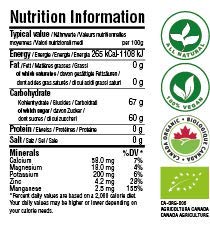 - Puro sciroppo d'acero estratto da alberi e terreni non trattati da composti chimici. La produzione viene accuratamente controllata e verificata da enti di controllo esterni (BioAgricert e EcoCert Canada).
