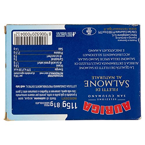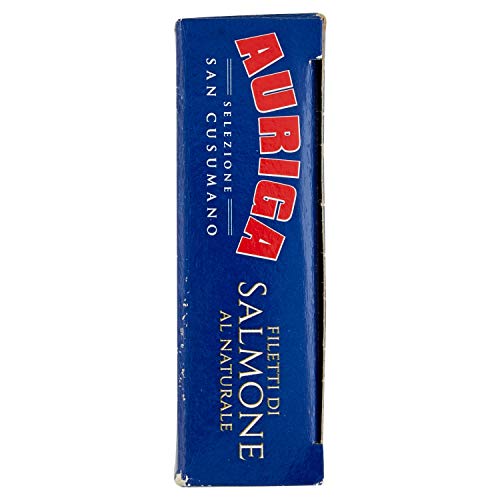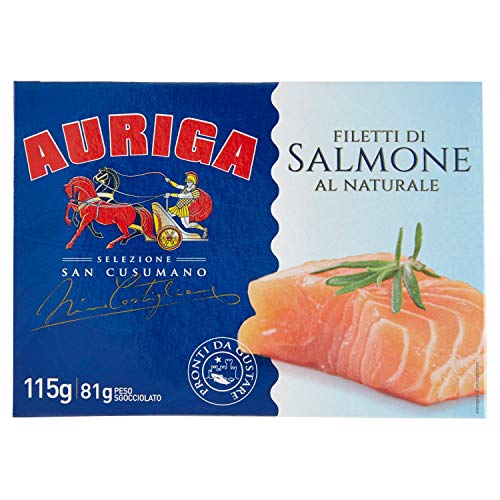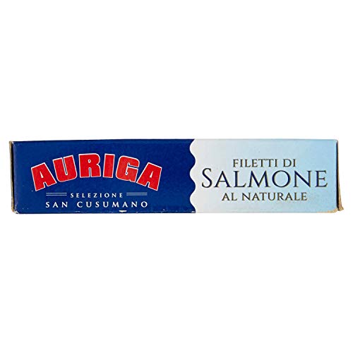 DescrizioneI filetti di salmone Auriga vengono selezionati e confezionati con cura e sono disponibili in olio d'oliva di prima qualità o al naturale per una dieta più equilibrata. Ricchi di proteine e di omega 3.IngredientiFiletti di Salmone, acqua , sale