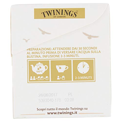 DescrizioneIl tè nero pure white è adatto ad ogni momento della giornata, da gustare caldo, sempre senza latte e senza limone per poter apprezzare appieno il gusto delicato. Nel 1706 thomas twining ha iniziato a proporre tè di alta qualità dal negozio inglese dello strand, a londra. Ancora oggi twinings offre alcune delle varietà di tè più pregiate al mondo nel suo antico negozio e in più di 100 paesi. Grazie alla sua grande esperienza nella selezione delle materie prime e nell'arte della miscelazione, twinings crea tè e infusi rinomati in tutto il mondo.Ingredientitè biancoIndicazioniVersare l'acqua bollente sulla bustina, lasciare in infusione per 3-4 minuti.Avviso di sicurezzaI produttori possono modificare la composizione dei loro prodotti. Pertanto, la confezione del prodotto può contenere informazioni diverse rispetto a quelle mostrate sul nostro sito. Si prega di leggere sempre l'etichetta, gli avvertimenti e le istruzioni fornite sul prodotto prima di utilizzarlo o consumarlo.Informazioni legaliNON EFFETTUIAMO SPEDIZIONI SULLE ISOLE MINORI , NELLA LAGUNA DI VENEZIA E NEI CAP DISAGIATI.Visualizza di più