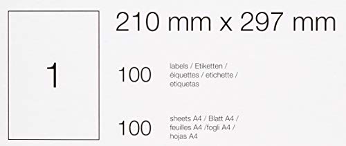 - 210 x 297 mm, 1 etichette per foglio, 100 fogli per confezione