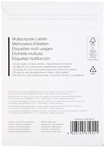 Descrizione Prodotto La tua vita con le etichette Organizza con semplicità Organizzati con stile, grazie alle etichette di SellerBasics. Le etichette sono compatibili con un'ampia gamma di dispositivi, offrono una stampa di alta qualità, sono realizzate con adesivi senza solventi e carta certificata FSC. Etichette di alta qualità Con angoli squadrati, colore bianco opaco e adesivo permanente: di queste etichette, vi potete fidare. Utilizzatele per organizzare il vostro ufficio o tenere la casa pulita e in ordine. Immagine di stampa perfetta 210.0mm x 297.0mm 1 etichette per foglio, 100 fogli Bianco opaco, angoli squadrati, adesivo permanente Da usare a casa o in ufficio Compatibili con stampanti laser, stampanti injekt e fotocopiatrici Linee definite e colori brillanti Fissaggio ottimale del toner Certificazione FSC, adesivo senza solventi Leggi di più Ampia compatibilità Qualsiasi sia il vostro dispositivo: - stampante laser, inkjet, fotocopiatrice - la stampa sulle etichette risulta perfetta Leggi di più Immagini nitide Grazie all’ottimale fissaggio del toner, il risultato della stampa su queste etichette sarà sicuramente nitido e con colori brillanti. Risultano così l’alleato perfetto per lavori di stampa. Leggi di più Sostenibilità certificata Le nostre etichette sono realizzate con adesivo senza solventi e carta certificata FSC. In questo modo potete scegliere il prodotto migliore per voi e per l’ambiente. Leggi di più