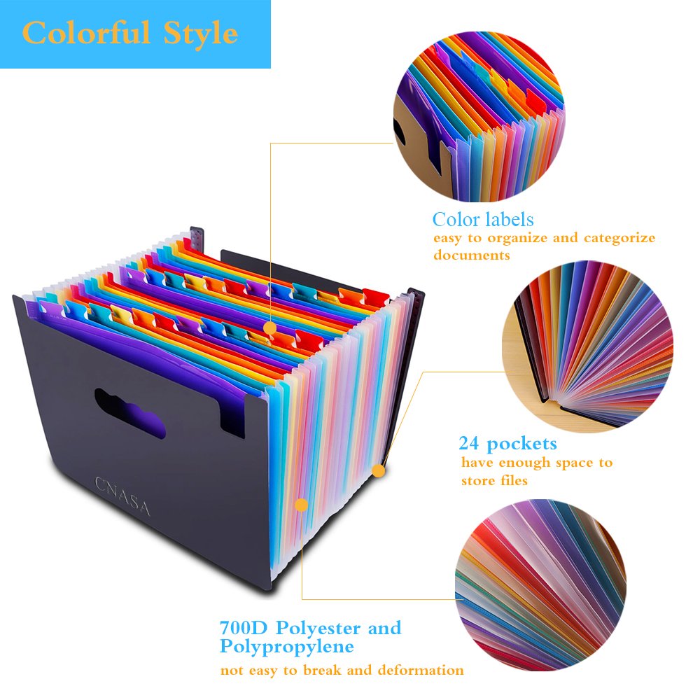 CNASA Cartella portadocumenti espandibile, Ideale per scuola, lavoro o casa, cartella fisarmonica,24 tasche