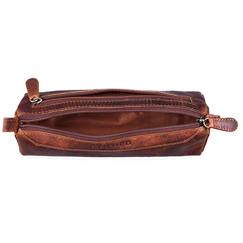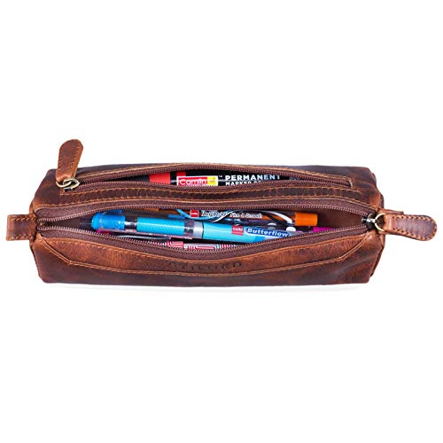 - STILORD 'Jim' Astuccio portapenne in pelle | con 2 x cerniere | in stile vintage | per università e ufficio