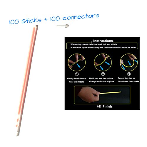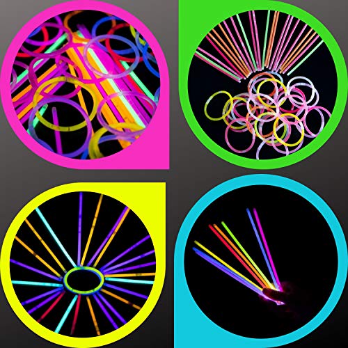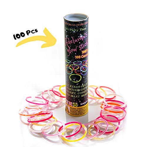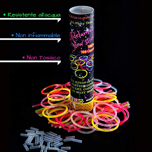 Adelama Braccialetti Luminosi Fluorescenti Fluo per Feste Glowstick Party Carnevale Compleanno Discoteca Concerti Starlight Pesca Campeggio Bambini Kit 100 Pezzi Connettori
