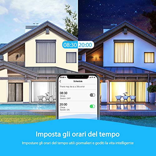 - 【Programma Impostazioni & Funzione Timer】 Con l'APP, puoi controllare singolarmente la lampadina intelligente o creare gruppi diversi per controllare le luci nel gruppo. Programma le luci Smart Wifi per accendere e spegnere, Puoi preimpostare il tempo per accendere / spegnere automaticamente le lampadine. Si può creare un gruppo per tutte le Sue lampadine intelligente e controllarle con solo un comando.
