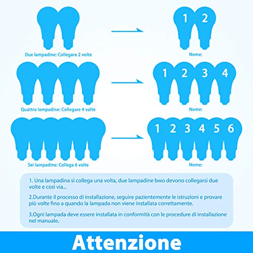 - 【Materiali di qualità & Istruzioni del'uso importanti】 Aerb lampadine smart ha la certificazione FCC, CE, RoHs. sono facili da usare, sicure e affidabili. Attenzione: Ogni lampada deve essere installata in conformità con le procedure di installazione nel manuale,Una lampadina si collega una volta, due lampadine devono collegarsi due volte e così via...