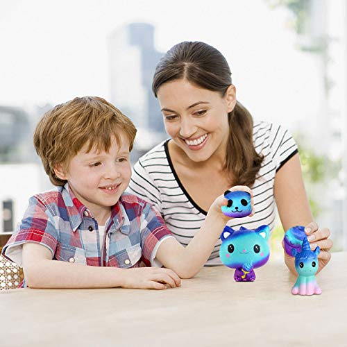 Amteker 4 Pezzi Galaxy Kawaii Giganti Squishies Lento Aumento Profumata Grandi Squishy Toys, Regalo per Bambini, Originali Giocattolo Antistress per Ragazze Ragazzi (Unicorno + Gatto + Panda + Poo)