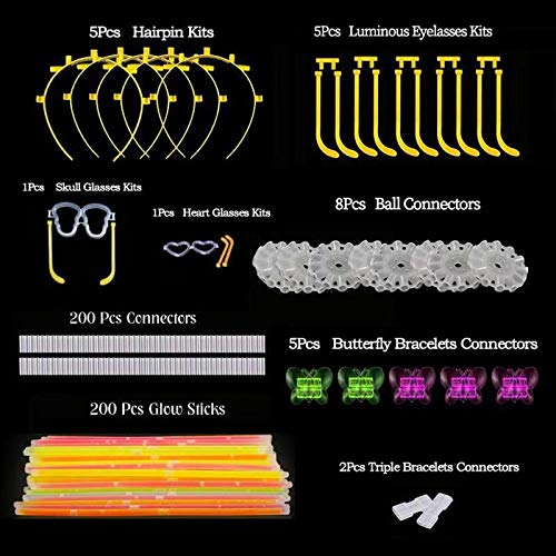 - 【427PCS】 supporti luminosi da 200 x 20 cm, connettori da 200 x 2D e 8 connettori circolari, 7 set di occhiali, 5 connettori a forcina, 5 connettori a farfalla, 2 connettori tripli, 427Pcs .(IMPORTANT:The quantity print on box might not match the exact amounts. Please refer to the actual number of received, a total of 427PCS, including all connectors.)