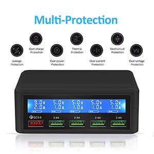 - 【 LCD Unico】: digitali identificano automaticamente e visualizzano tramite il display il numero di porta che viene connessa al dispositivo. La corrente di ricarica arriva a 2.4A per porta, sufficiente per l’utilizzo familiare e durante i viaggi.