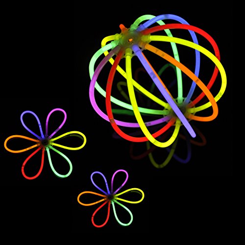 - 【Colori brillanti al neon】Il set include: 100 bacchette luminose lunghe 20 cm di qualità premium e con i colori misti, LED Ghirlanda e 100 connettori riutilizzabili, per poter creare cappelli, cerchietti, occhiali, orecchini, braccialetti tripli, fiori o palle luminose.