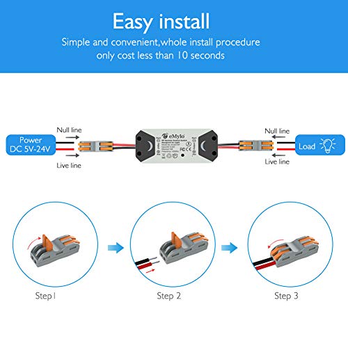 - ♥ Più flessibilità e ampiamente applicazione: lo switch per relè RF eMylo adotta la tecnologia di codifica wireless non direzionale, che consente un controllo indipendente senza interferenze reciproche, può essere utilizzato in campi di controllo e sicurezza industriali, come luce, motore, telecomando, allarme di sicurezza wireless, wireless allarme porta, controller wireless, ecc.