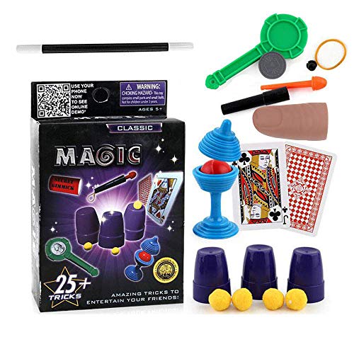 - 25 + trucchi classici come la sfera di fuga, la moneta magica e molti altri. Include bacchetta magica e mantello magico.