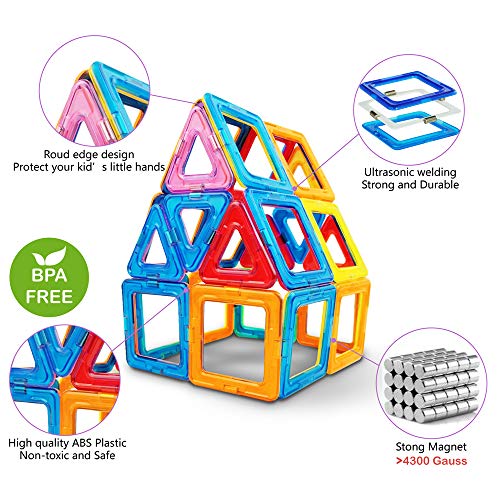 - 【Giocattoli divertenti】: giocattolo magnetico può avere molte forme, può essere combinato in molti modelli, Sviluppano l'immaginazione dei bambini, la creatività e la mente. Totale 42 pezzi, 22 Triangolare, 20 Quadrato.