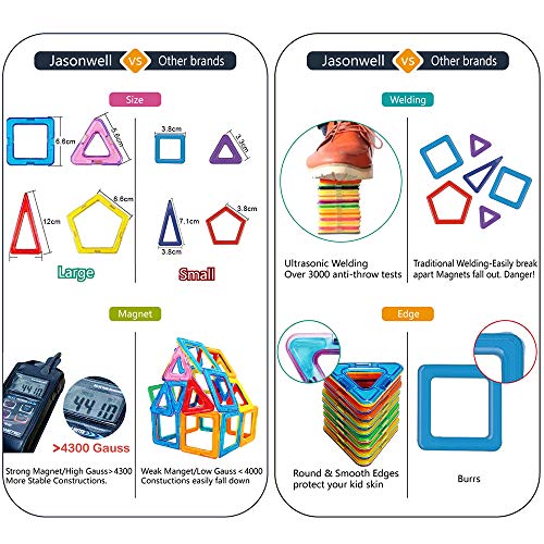 Jasonwell 42 Pezzi Blocchi Costruzioni Magnetici Magnetiche Giocattoli per Bambini Magneti Giocattolo Educativi Kit Accatastamento