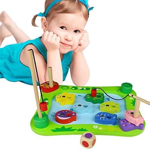 Caratteristiche del prodotto: ✔ Gioco di pesca è molto buono per i bambini di esercitare capacità di pensiero logico, incoraggiare la coordinazione occhio-mano e lo sviluppo del motore. ✔ Lasciate che i bambini distinguono i colori, il numero, e gli animali,Anche può promuovere i bambini per andare d'accordo con i genitori e gli amici. ✔ L'aiuto del giocattolo per aiutare i bambini con il loro coordinamento delle mani e dell'occhio, scatena la loro immaginazione. Il contenitore contiene: 1 * Dadi 1 * Tavolo da gioco 2 * Tasti magnetici 9 * Pesci