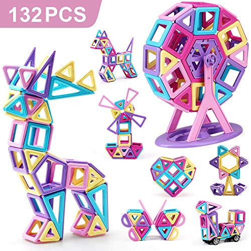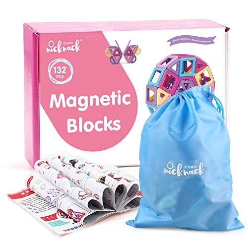 nicknack Magnetico Costruzione Blocchi Bambini 132 Pezzi Giocattoli magnetici, Giochi per Giocattoli Regalo con Borsa Portatile per 3 4 5 6 Anni Ragazzi e Ragazze