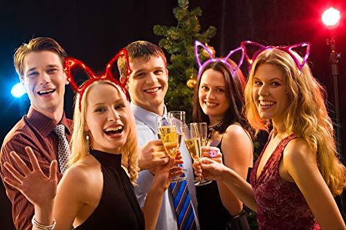 Yuccer Cerchietto Orecchie Gatto Donna LED Giocattoli Luminosa Colorato Disco per Feste Neon Party Favor 20 Pezzi (Colore Casuale)