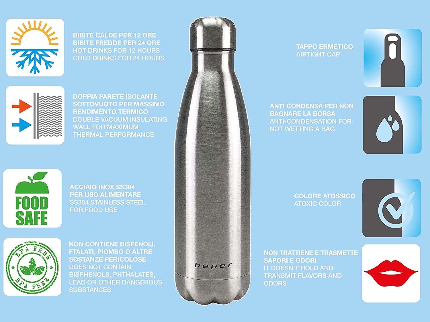 Beper BI.505 Thermos Bottiglia 500 ml, Argento