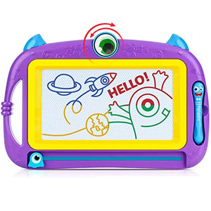 - 【Semplice da Usare】- Scorrere la manopola situata in basso per cancellare il disegno. Il tuo bambino ha solo bisogno di scorrere semplicemente avanti e indietro per cancellare e iniziare nuovo disegno, senza acquistare nuovi stazionario.