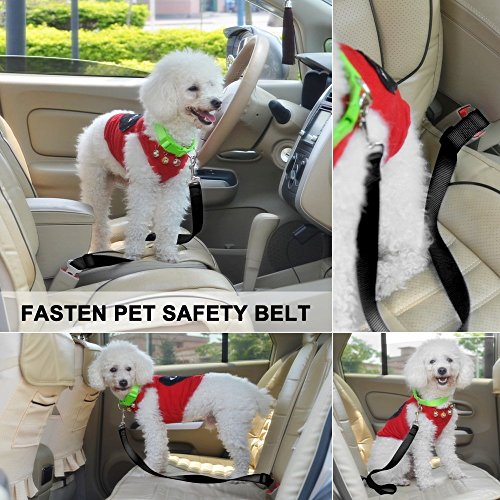 KEKU Cane Cintura di Sicurezza (2pcs / Pack), Regolabile Cane del Gatto dell'animale Domestico di Sicurezza Conduce Sedile Auto Cablaggio della Cinghia Seatbelt- Nero,Rosso