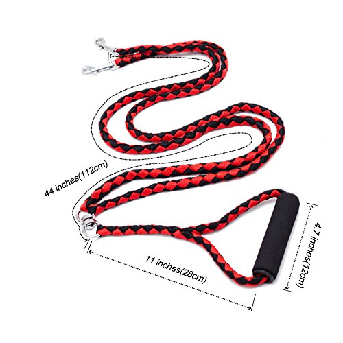 Colore:rosso e nero Il guinzaglio del cane è fatto di materiale di nylon forte, intrecciato. Quindi è molto difficile essere distrutti. groviglio libero è un nuovo concetto di design attraverso l'aggiunta di un gancio girevole a 360 ° a rotazione che può aiutare a mantenere in buon umore mentre si cammina o di formazione. Con questa perfetta progettato guinzaglio del doppio del cane, si può camminare il cane e tenere su altre cose come ad esempio un telefono allo stesso tempo. Se ti rende più libero e conveniente!