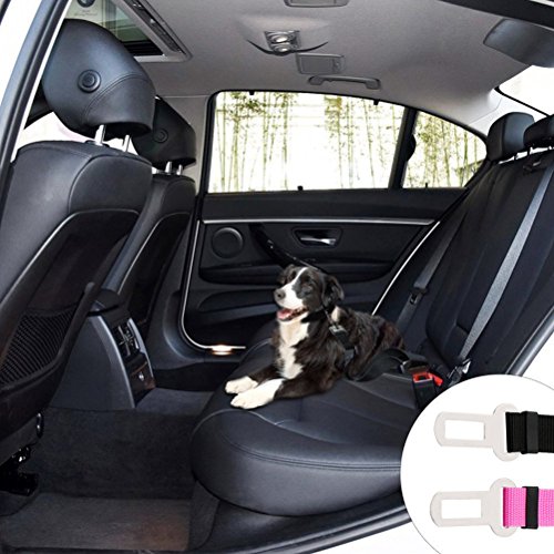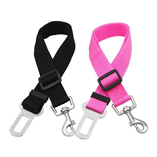 UEETEK 2pcs auto regolabile cane gatto cablaggio Auto cintura di sicurezza guinzaglio per cani Pets(Black+Pink)