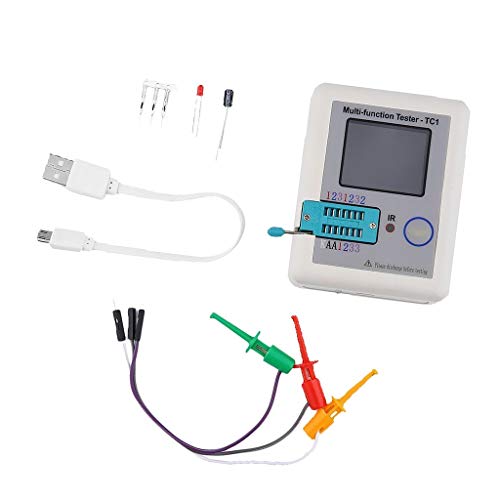 Descrizione:- Per il rilevamento di transistor NPN e PNP, condensatore, resistore, diodo, triodo, MOSFET a canale N e P-channel, IGBT, JFET, triac e batteria, ecc.- Può essere utilizzato anche per rilevare forme d'onda a infrarossi.- Dopo il rilevamento, allineare il telecomando a infrarossi con la spia "" IR "", quindi premere il pulsante nel telecomando, se il rilevatore la decodifica con successo, visualizzerà il codice dati e la forma a onda infrarossa.- Operazione con un solo pulsante, rilevamento automatico e spegnimento automatico, inoltre è possibile premere il pulsante multifunzione per chiudere il rilevatore.- Metti i perni del componente nell'area corrispondente, quindi componi la piccola maniglia e il rilevatore la testerà automaticamente, infine i risultati verranno visualizzati sullo schermo TFT della retroilluminazione in modo chiaro.Specifica:- Autotest con calibrazione automatica- Colore bianco- Dimensioni: 8.8x7x2.8cm / 3.46x2.76x1.10 pollici- Display: schermo TFT da 1,8 pollici, schermo a colori- Intervallo diodi: inferiore a 4,5 V- Diodo Zener: Area rilevamento transistor: 0,01-4,5 V- Area di rilevamento del diodo zener: 0,01-30 V- Gamma triac: IGT inferiore a 6 mA- Capacità: 25pF-100mF- Resistore: 0,01-50 MΩ- Induttanza: 0,01 mH-20H- Tensione di alimentazione: 3,7 V- Alimentazione: batteria al litio ricaricabile incorporataLa confezione include:1 Tester transistor multifunzione TFT1 X Set di componenti elettronici3 ganci di prova per pezzi X.1 cavo X Piece