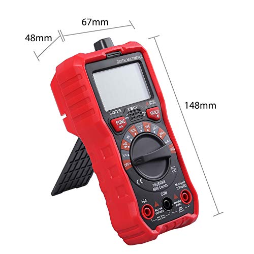 - 【 6000 conteggi Display e multifunzione 】 il multimetro digitale PU 6000 conteggi e test di tensione AC/DC/corrente, diodi, resistenza, capacità, frequenza, Duty Cycle, temperatura, continuità, NCV e test hFE con 10 Auto-Ranging