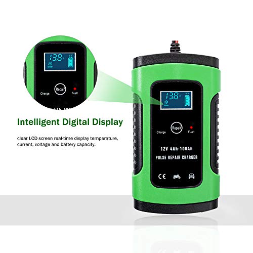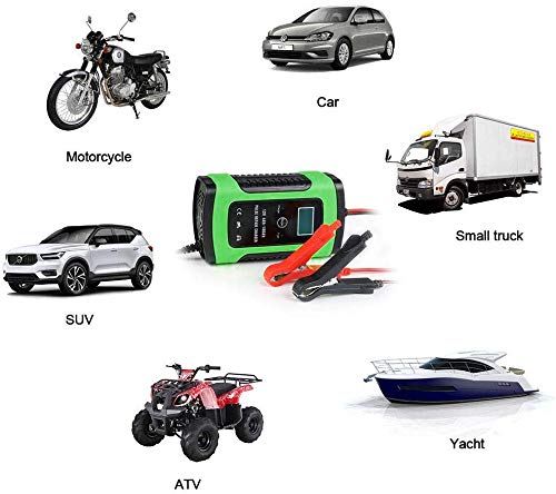 Caricabatteria per auto e moto 12V 6A,mantenitore di carica batteria intelligente caricabatterie portatile con display LCD digitale per ATV SUV Yacht