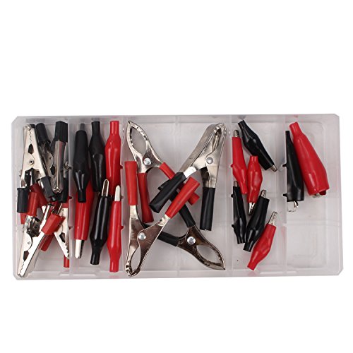 CCLIFE Set da 28 morsetti a clip a coccodrillo pinze a coccodrillo e morsetti batteria assortiti, clip a coccodrillo e connettori bipolari