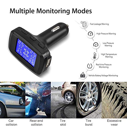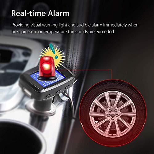 - 【Accendisigari】: Il TPMS è alimentato da accendisigari per auto, è più affidabile dell'energia solare e funziona bene sia di giorno che di notte. Con la porta USB integrata aggiuntiva, puoi caricare i tuoi dispositivi contemporaneamente.