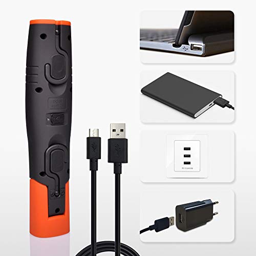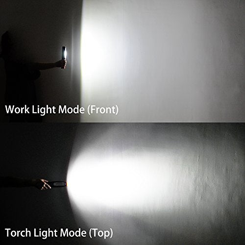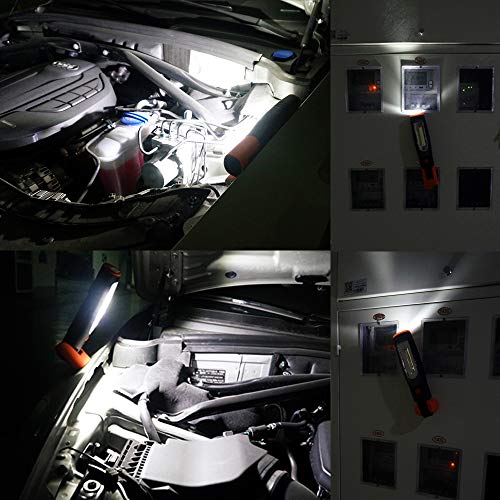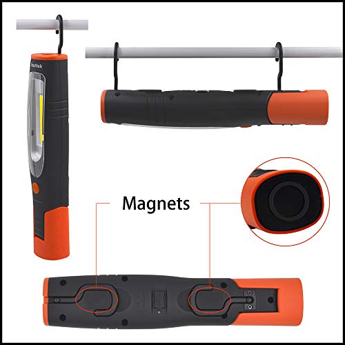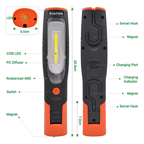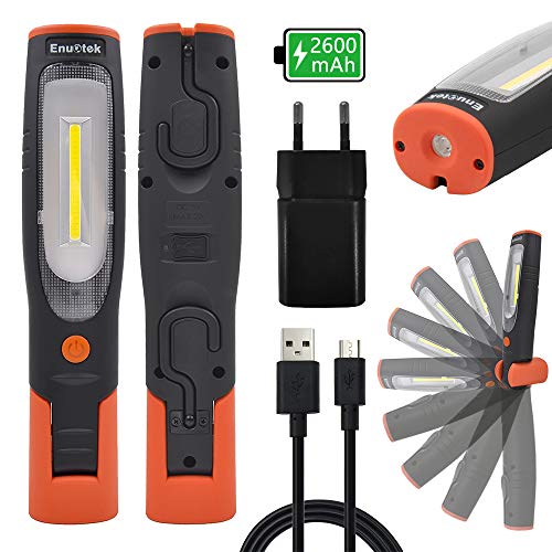 ENUOTEK Lampada Torcia da Lavoro a LED Ricaricabile Potente Lampada Ispezione Portabile 4W COB e 3W LED Batterie al Litio Ricaricabili 2600mAh Due Ganci e Magneti Potenti [Classe di efficienza energetica A+]