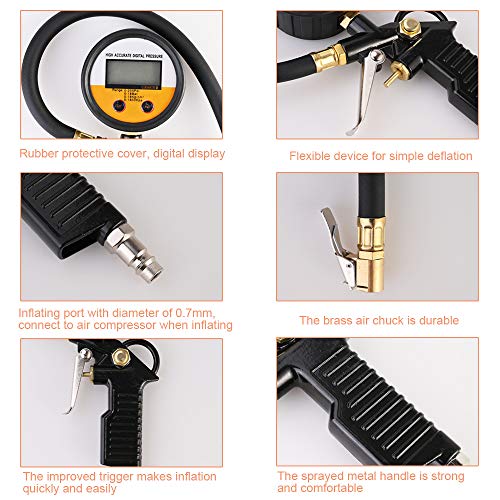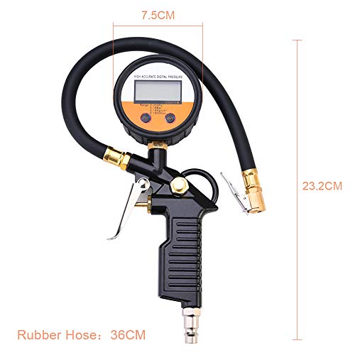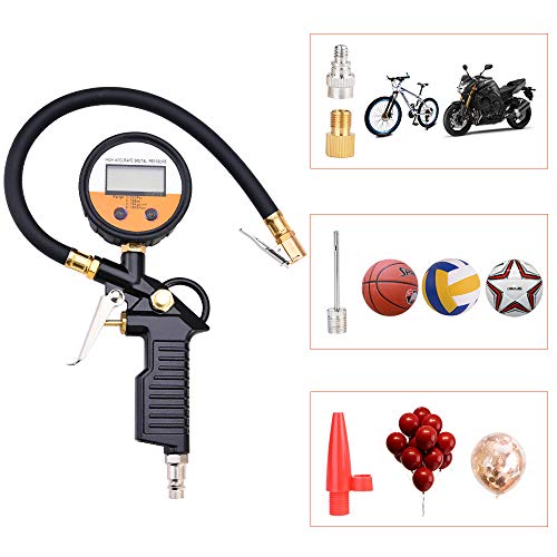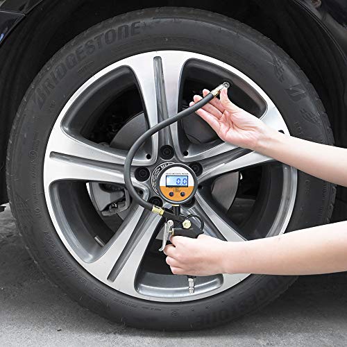 - Facile da Usare: Il manometro pressione gomme digitale è possibile gonfiare il pneumatico e misurare contemporaneamente la pressione, quando si collega un compressore d'aria (Compatibile con l'uscita del compressore d'aria NPT da 1/4").
