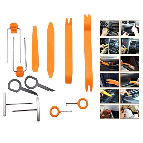 Caratteristiche dello prodotto Materiale: Plastica. Questo kit ha un pezzo strumento di leva di plastica per rendere l'installazione di luce auto, luce interna o targa piu' facile. E' possibile utilizzare questo strumento di leva per visualizzare la maggior parte delle auto lampade interni, come le lampade da lettura, plafoniere, le porte laterali di cortesia, luci specchio e anche per le lampade esterne targa senza armadi danni di plastica o la targa della vettura. Funziona anche per stereo, pelli e pannelli. Costruzione di utensili in plastica impedisce di graffiare e danneggiare la vernice dell'auto in pelle, cromo e altre superfici. Nessun graffi e ridurre i danni al sistema. Confezione: 1 x Set Riparazione Strumenti