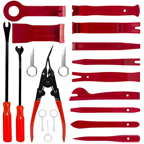 - Multifunzionale: smontare il rivestimento interni del veicolo, il quadro strumenti, l' area di controllo del suono, il portiere e il rocker per interni, installare luci, porta maniglie di navigazione, cambiare. Adatto per la maggior parte delle auto. Un buon aiuto per gli appassionati di auto professionale e personale di manutenzione. Possono essere utilizzate anche per rimuovere gli elementi come la gomma da masticare adesivo che sono difficili da pulire su l' armadio e tavolo.