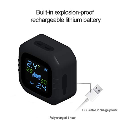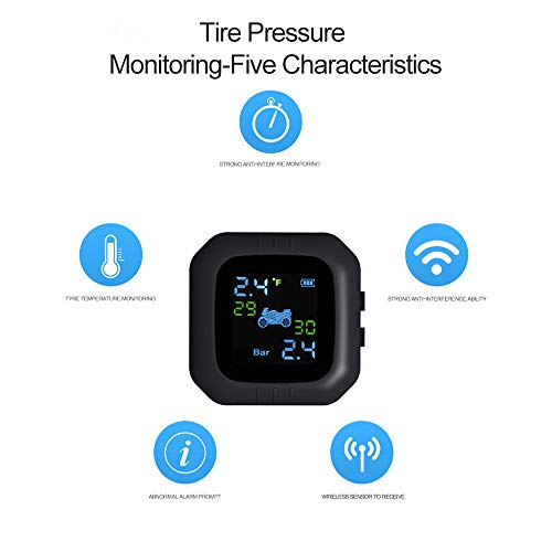 KKmoon Sistema di Monitoraggio della Pressione dei Pneumatici per Motociclette TPMS Cordless Impermeabile con 2 Sensori Esterni Strumenti