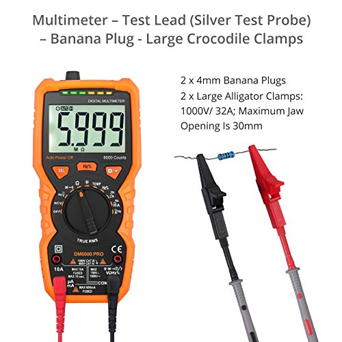 • 4mm Spina a Banana --- Include 2PZ 4mm Spine a Banana per Collegamento con Morsetti a Coccodrillo Grandi. Connessione: Multimetro - Puntali (Sonda da Test Argento) - Spina a Banana - Morsetti a Coccodrillo Grandi.