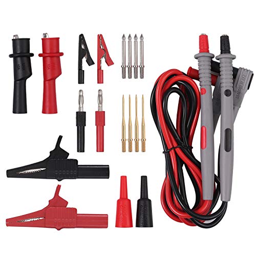 Colore:16pz Specificazioni:Materiale: PVCFilo: GB466-86, Cu-1(99.95%)OD: 3.5mmLunghezza del Filo: 1000mnLunghezza dell'Asta: 117mmNucleo di Rame: 35 x 0.1Puntali: CAT II 1000V, 10AMini Clip a Coccodrillo: 60V, 10A; Apertura Massima di Ganasce è 8.5mm.Clip a Coccodrillo di Sicurezza: 1000V, 10A; Apertura di Ganasce è 8.5mm, Clip in Ottone Nichelato, Alloggiamento in Nylon Riempito di Vetro.Set Morsetto a Coccodrillo: 1000V, 32A; Apertura Massima di Ganasce è 30mm.Perno di Sonda Standard Argento: 2.0mmPerno di Sonda Acuto Oro: 1.0mmSet di Morsetto a Coccodrillo Grande: 1000V, 32A; Apertura di Ganasce è 30mmAmpia Applicazione:Può essere utilizzato per molti tipi di multimetro e pinza amperometrica, adatto a scuole, laboratori, elettricisti e altro, essere portatile e conveniente.Nota:1. Le clip a coccodrillo di sicurezza per isolamento e le mini clip a coccodrillo possono essere collegate con sonde di prova.2. I grandi morsetti a coccodrillo sono per il fai-da-te. Non supportano la connessione direttamente con le sonde di test, hanno bisogno di una spina a banana come ponte per essere saldati. Collegamento: multimetro - puntale (sonda per test argento) - spina a banana - morsetti a coccodrillo grandiContenuto del Pacchetto:2 x Puntale6 x Extra Perno per Sonda da Test2 x Mini Clip a Coccodrillo2 x Clip a Coccodrillo di Sicurezza2 x Grande Morsetto a Coccodrillo2 x Spinaa Banana